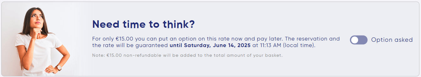 If you do not finalize your booking before the end of the hold period, it will be automatically cancelled. No justification will be required.