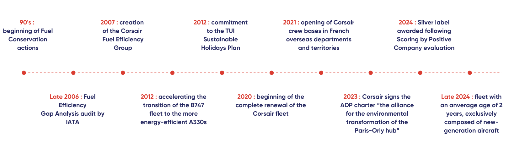 - Recycling equivalent to the weight of 1 bus through the waste management project implemented in Martinique in March 2024. Over 5 years, this project, led by Corsair with ITEDOM and Newrest, will avoid landfilling the equivalent weight of an Airbus A319.