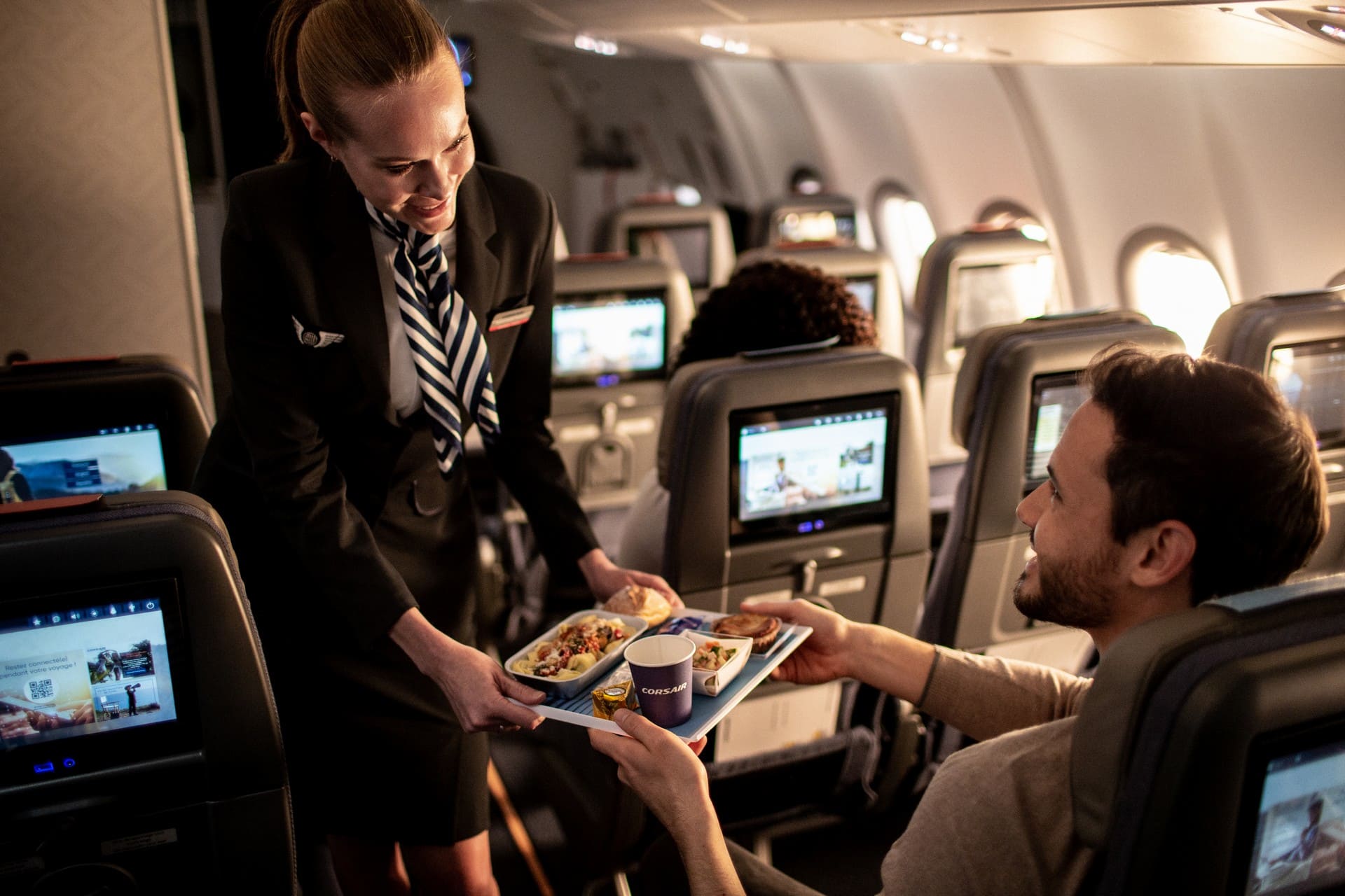 Depending on your departure time and the duration of your journey, different types of meals or snacks are offered to make your flight as enjoyable as possible :